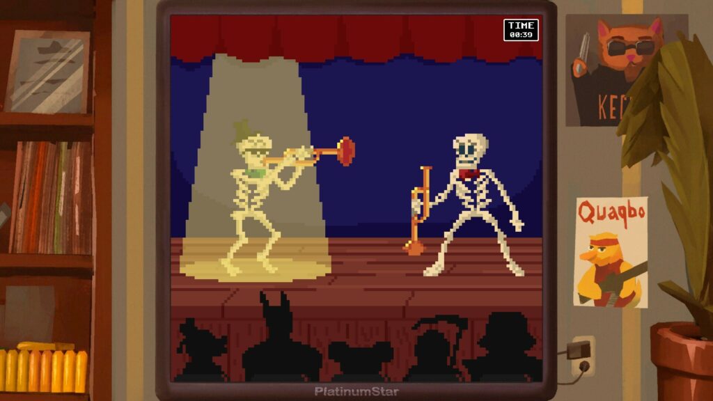 Optisch präsentiert man sich bunt und pixelig. Das hat mir schon ganz gut gefallen. Akustisch bietet man aber überwiegend ein ziemlich unerträgliches Fahrstuhlgedudel. Für die Steuerung greift man am Besten zum Gamepad. Vermutlich ist es auch ein guter Kandidat für unterwegs. Auf dem Steam-Deck scheint es spielbar, ist aber noch nicht verifiziert. Das Spiel unterstützt nur zwei Sprachen: Englisch und Russisch. Spielt aber eh keine Rolle, denn der verwirrenden Story kann und will man ohnehin nicht folgen. Und die Mini-Spiele werden einem auch nicht großartig erklärt, hier jetzt man voll auf Trail & Error. Das hat aber noch nie wirklich Spaß gemacht…