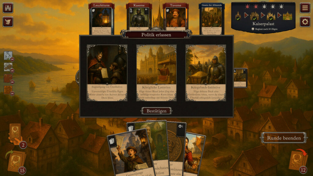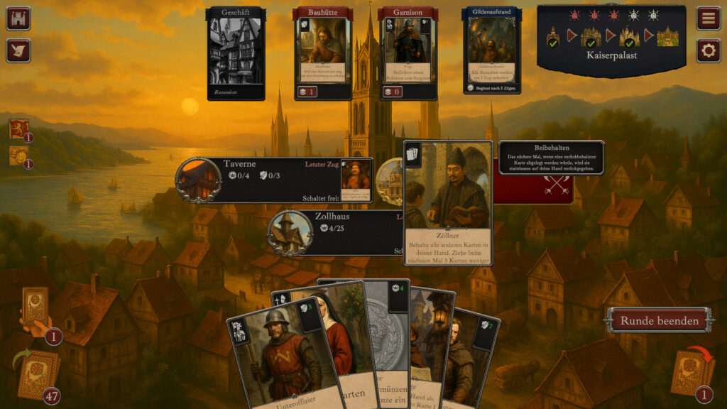 Caemdale ist ein Roguelike-Deckbuilder mit Karten im Stil klassischer Gemälde. Der Stil hat mich neugierig gemacht und ich habe mich mal ein paar Runden gespielt. Laut Handlung müssen wir unsere Stadt gegen Angriffe verteidigen. Als wäre das nicht schon genug, ist unsere Bevölkerung auch ziemlich aufmüpfig und startet gerne mal eine Revolution. Die müssen wir dann ganz nebenbei auch noch niederschlagen.