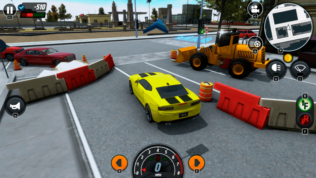 Das Spiel will gerne International daherkommen, hat aber eindeutig einen amerikanischen Ursprung. Man kann aber Sprache und sich für das metrische oder imperiale System beim Spielstart entscheiden.Danach lernt man erstmal die grundsätzlichen Dinge: Gas geben, lenken und natürlich auch bremsen. Hat man diese Hürde genommen, kommen auch schon Verkehrsschilder ins Spiel. Während man bei GTA ja rote Ampeln und Stop-Schilder geflissentlich ignoriert, kassiert man hier direkt ein Game Over! dafür. Recht so, hier werden wir schließlich auch nicht zum Fluchtwagenfahrer geschult.