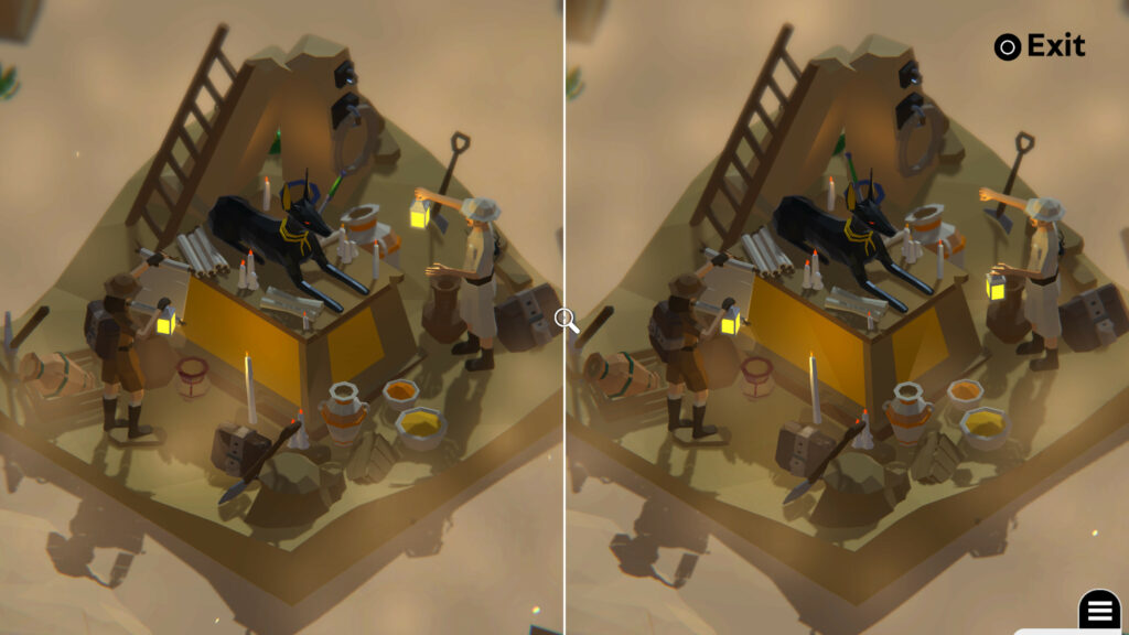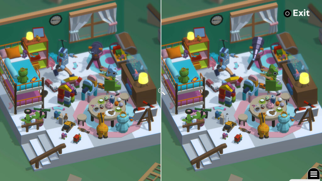 Tiny Lands: Deluxe Edition ist ein Suchbild-Spiel. Uns wird links und rechts jeweils die gleiche Szene gezeigt, in denen sich aber kleine Fehler verstecken. Die muss man finden und per markieren. Das ist schon das ganze Spielprinzip erklärt. Solche Suchbilder kennt man oft auch aus Zeitschriften. Dort sind sie aber natürlich auf 2D beschränkt. Tiny Lands: Deluxe Edition eröffnet uns die dritte Dimension und lässt uns die Szenen frei drehen und zoomen.